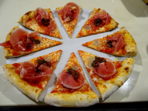 pomodoro, mozzarella, prosciutto crudo o crudo e funghi