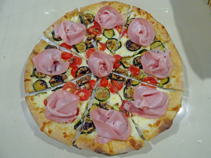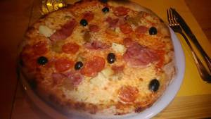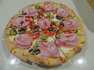 pomodoro, mozzarella, prosciutto cotto, funghi, carciofi e olive