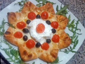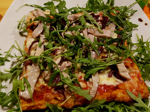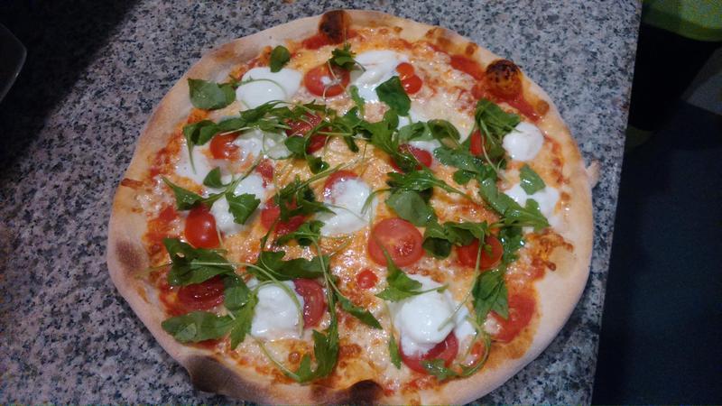 pomodorini freschi, mozzarella, funghi, rucola e scaglie di grana