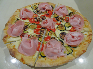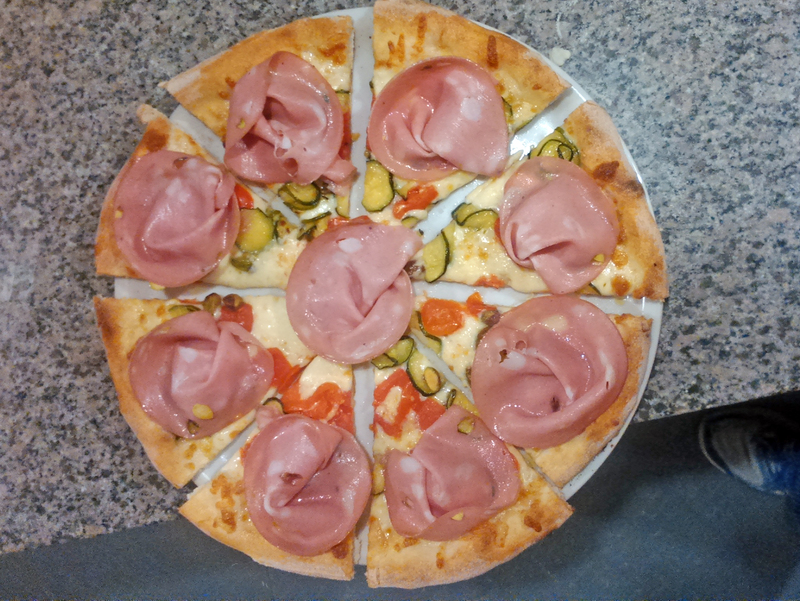 mozzarella, pomodoro fresco, zucchine, pistacchi e mortadella