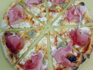 pomodoro, mozzarella, gorgonzola, salamino piccante e noci